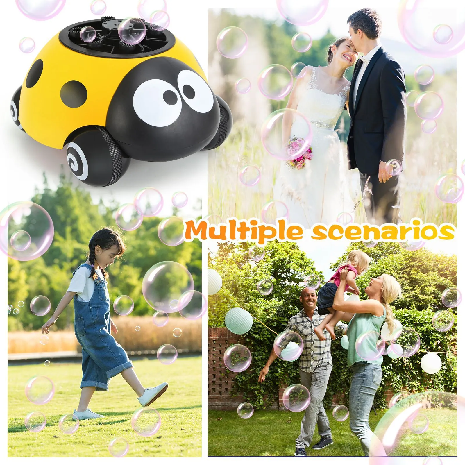 Automatic ladybird bubble machine can produce a large number of bubbles, children will love to chase around the bubbles and compete to burst.