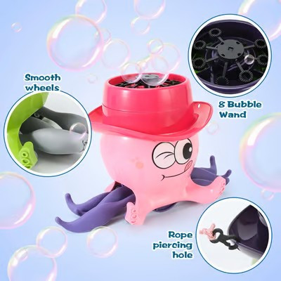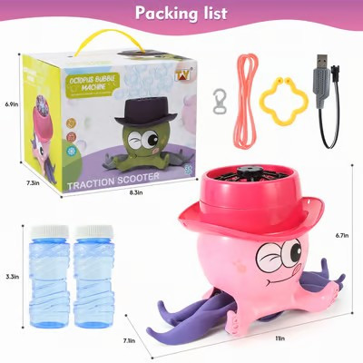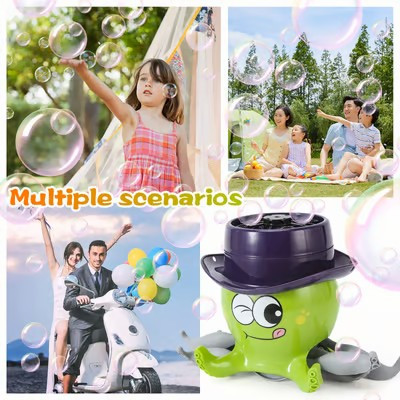 The bubble machine is designed to be tractable, usB-charged, and has soft lighting. High quality and strong ABS material. Easy to refill and clean